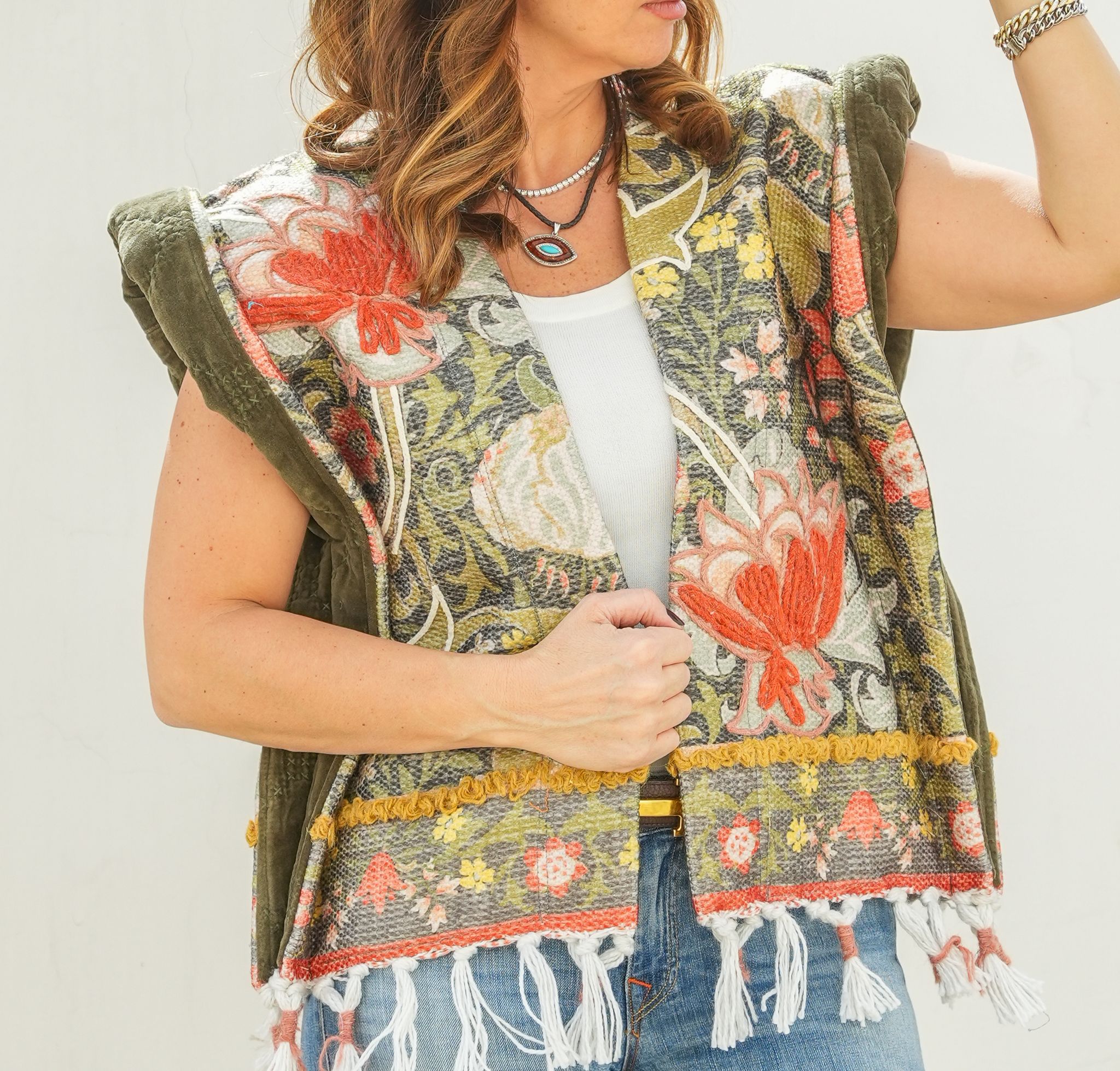 Short Fringe Vest - Green